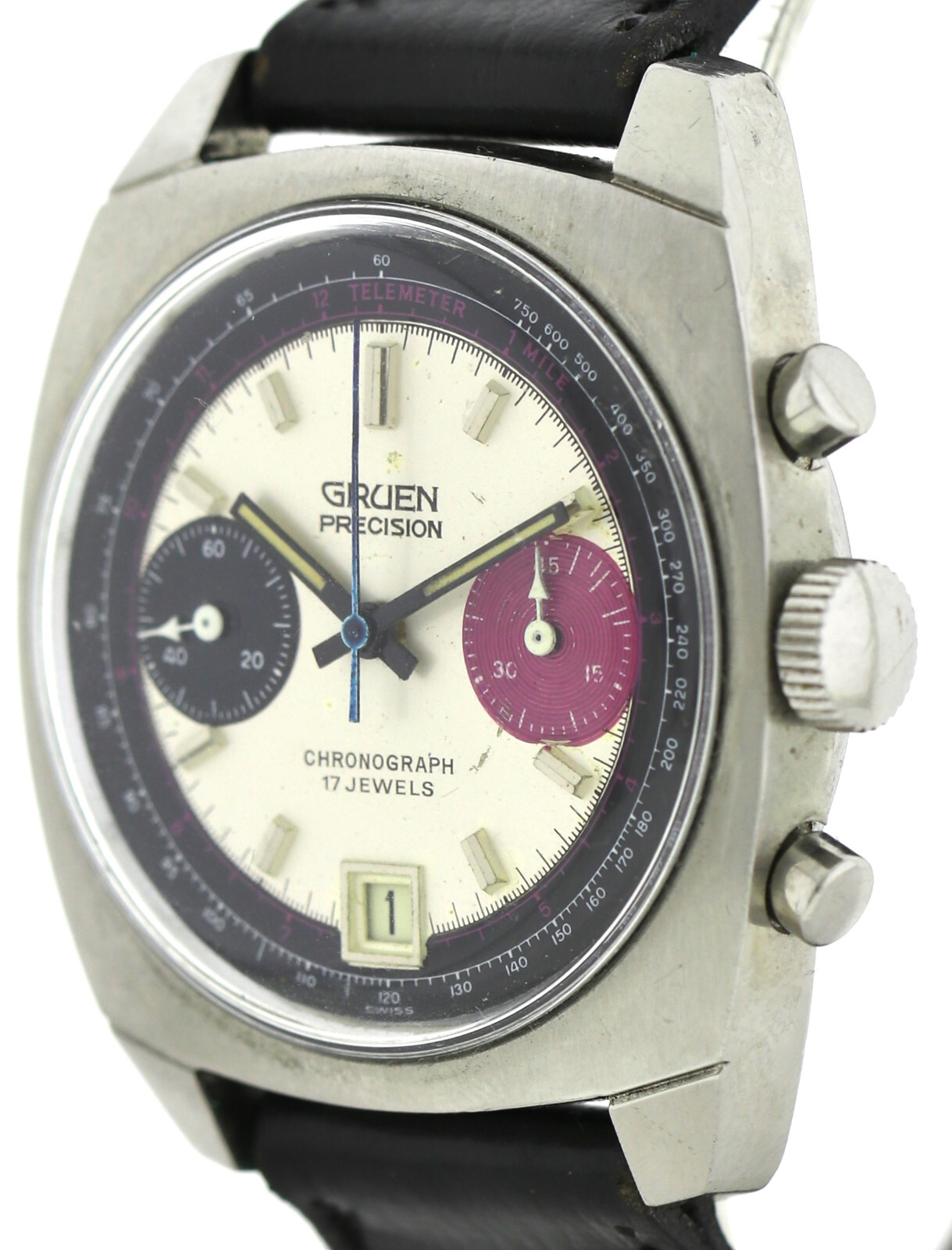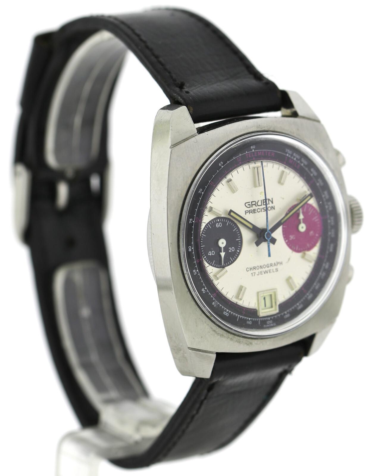 GRUEN PRECISION, VINTAGE- MEN´S- CHRONOGRAPH, 37,5MM, CAL. VALJOUX 7734 MEN´S WRISTWATCH IN STAINLESS STEEL