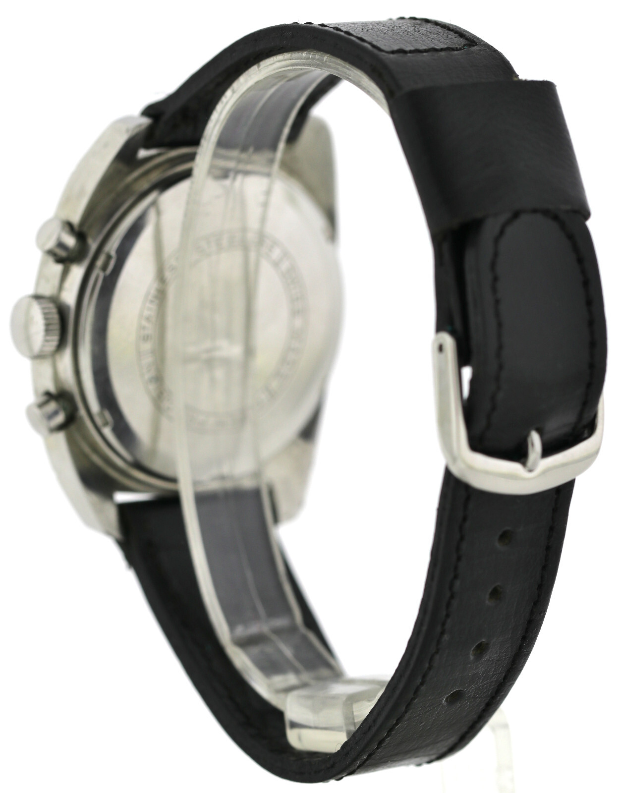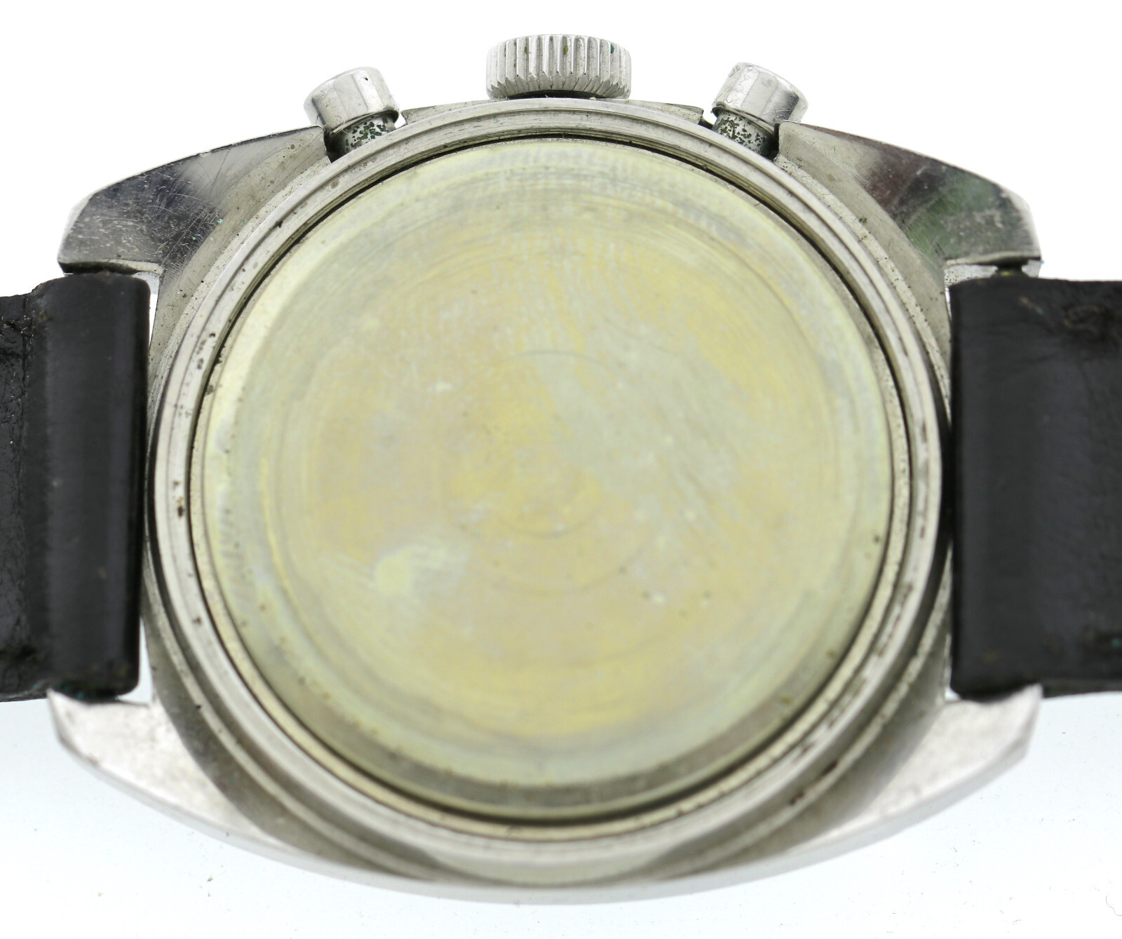 Edelstahl, 37,5mm ohne Krone und Drücker gemessen, verschraubter Boden, nur leichte Nutzungsspuren, für das Alter sehr guter Zustand |