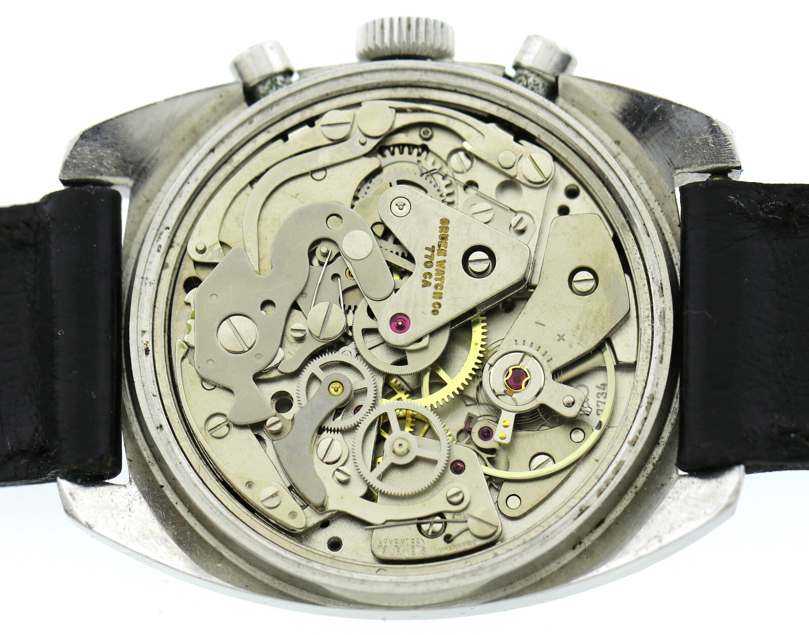 Handaufzugs- Uhrwerk , Gruen Watch 770CA, Valjoux 7734, 17 Steine, Werksabdeckung zusätzlich, funktionstüchtig |